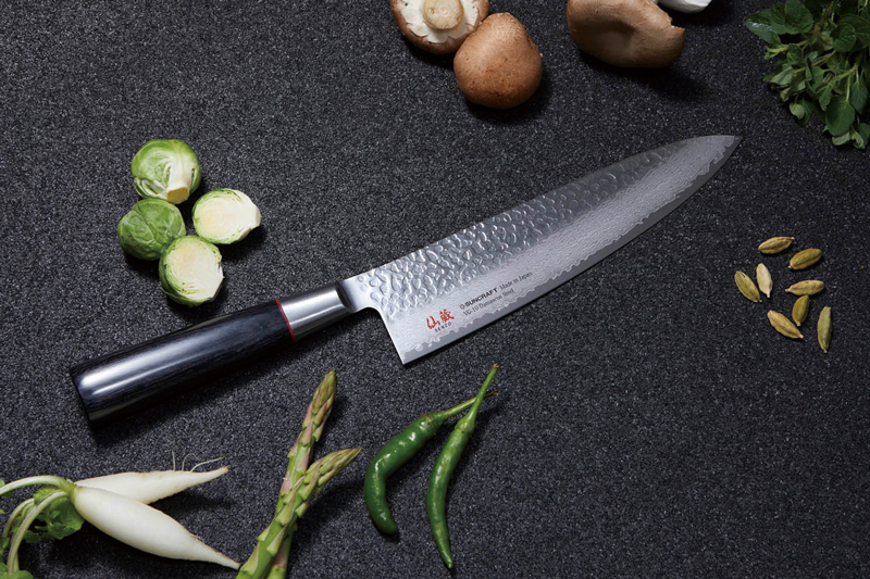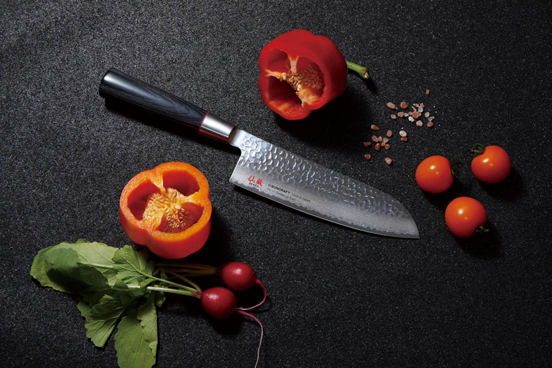 Hammered pattern, “Tsuchime” on knife blade gives a feeling of hand-craft in design.