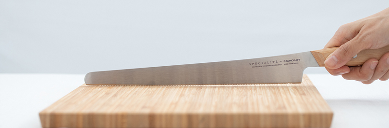 サンクラフトのジェノワーズナイフは、繊細なジェノワーズ(※1)生地を美しく切り分けるための工夫が詰まったナイフです。