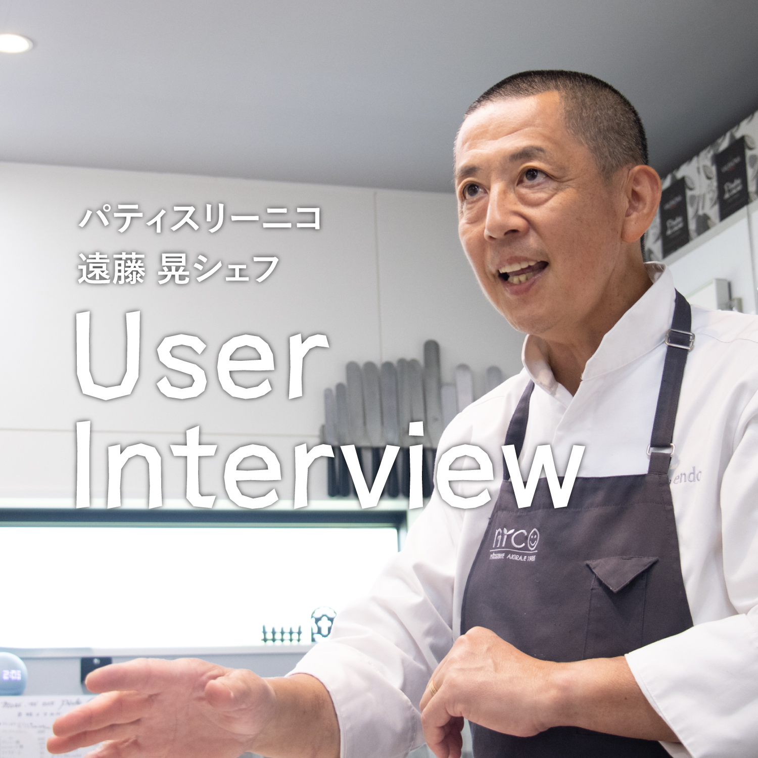 トランシュナイフは、もともとバターやチーズなどがくっつかないナイフとして商品化したナイフでした。そんなトランシュナイフを発売以来、ご愛用してくださっているパティスリーニコの遠藤シェフ。