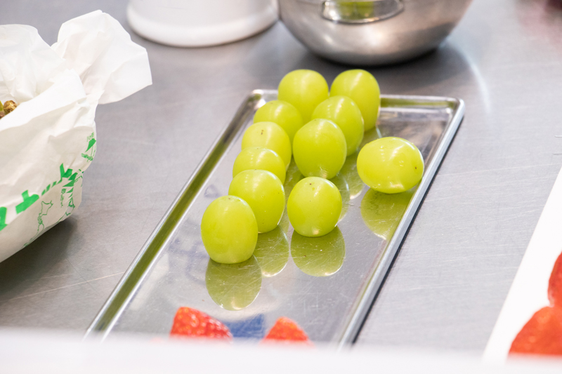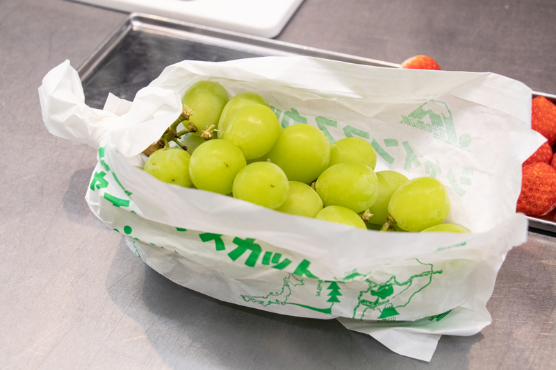 この日は、ちょうど旬ということもあってシャインマスカットの仕込みも見せていただきました。