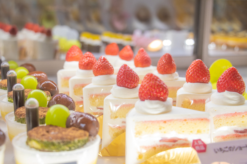 パティスリーの看板ケーキでもあるいちごのショートケーキは、一年中ショーケースに並ぶ定番品。一年中作り続けるために、その時々で一番おいしい産地のいちごを仕入れているそうです。